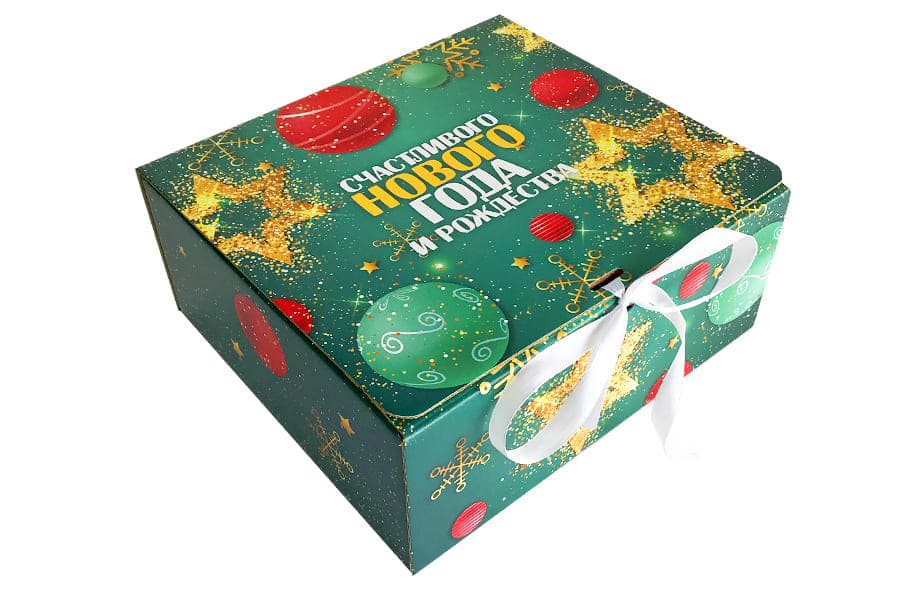 Коробка складная с лентой. Состав: кашированный микрогофрокартон.