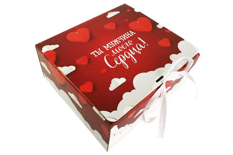Коробка складная с лентой. Состав: кашированный микрогофрокартон.
