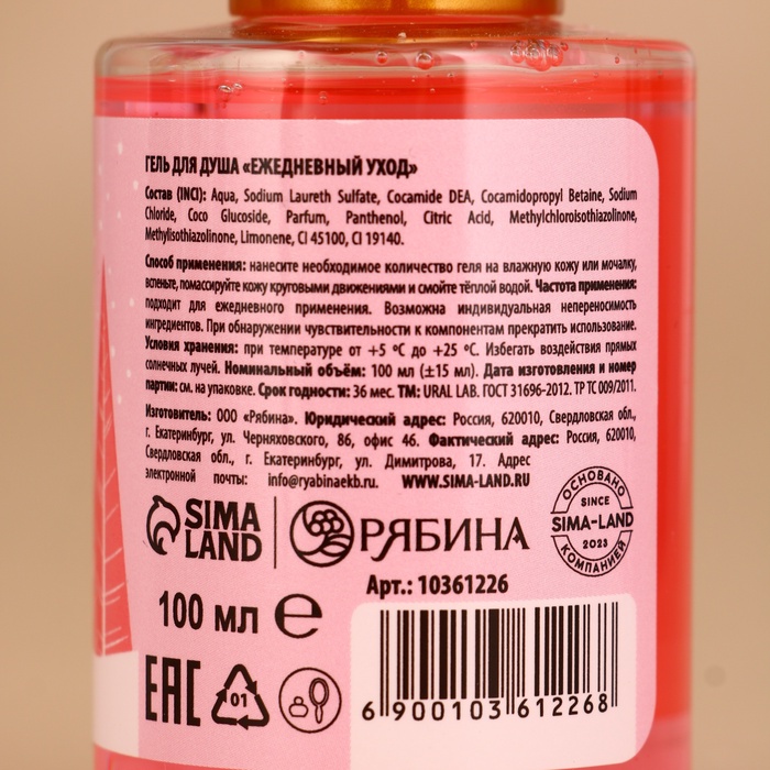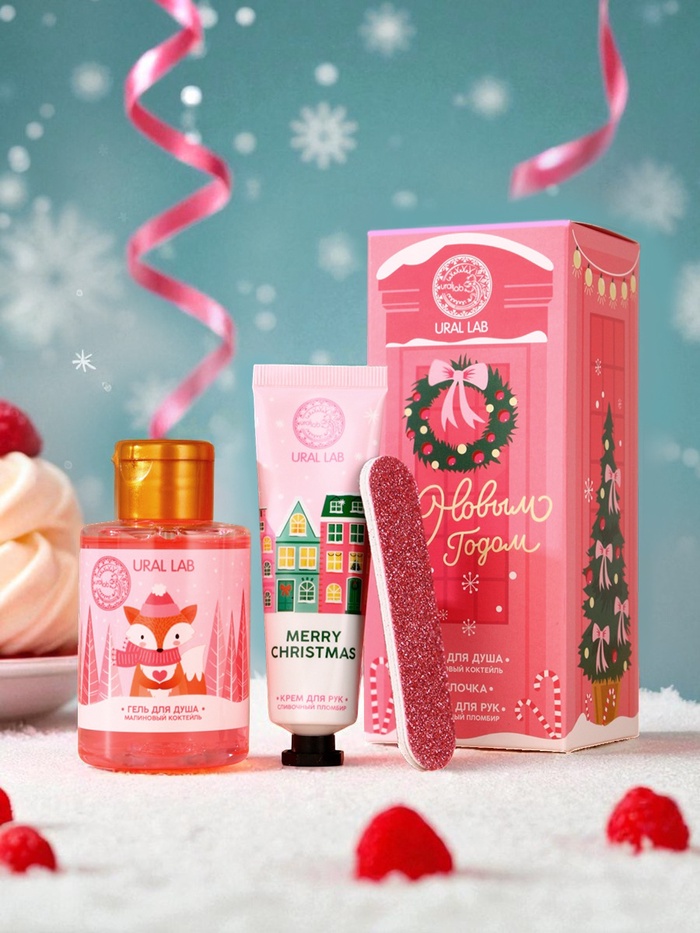 Производитель: URAL LAB; Габариты: 6,5 x 6,5 x 15,5; Страна: Россия; В боксе: 24 набор; Состав: См. на упаковке; Материалы: см. на упаковке; Фасовка: по 1 набор; Индивидуальная упаковка: Плёнка; Сертификат: ЕАС; Набор: Да; Для кого: Для женщины; В наборе, шт.: 3; В упаковке, шт.: 3; Вес, г/Объём, мл: 30, 100; Вид упаковки: Подарочная коробка; Символ года: Нет; Тематика праздника: Новый год; Адресат: Без адресата; Возраст: Взрослый; Область применения: Для рук, Для тела; Аромат: Малиновый коктейль, Сливочный пломбир; Составляющие набора: Гель для душа, Пилка, Крем для рук; Темпер. ограничение НЕ НИЖЕ ℃: +5; Темпер. ограничение НЕ ВЫШЕ ℃: +25; Возраст: Для взрослых; Назначение: Увлажнение; Форма выпуска: Флакон без дозатора