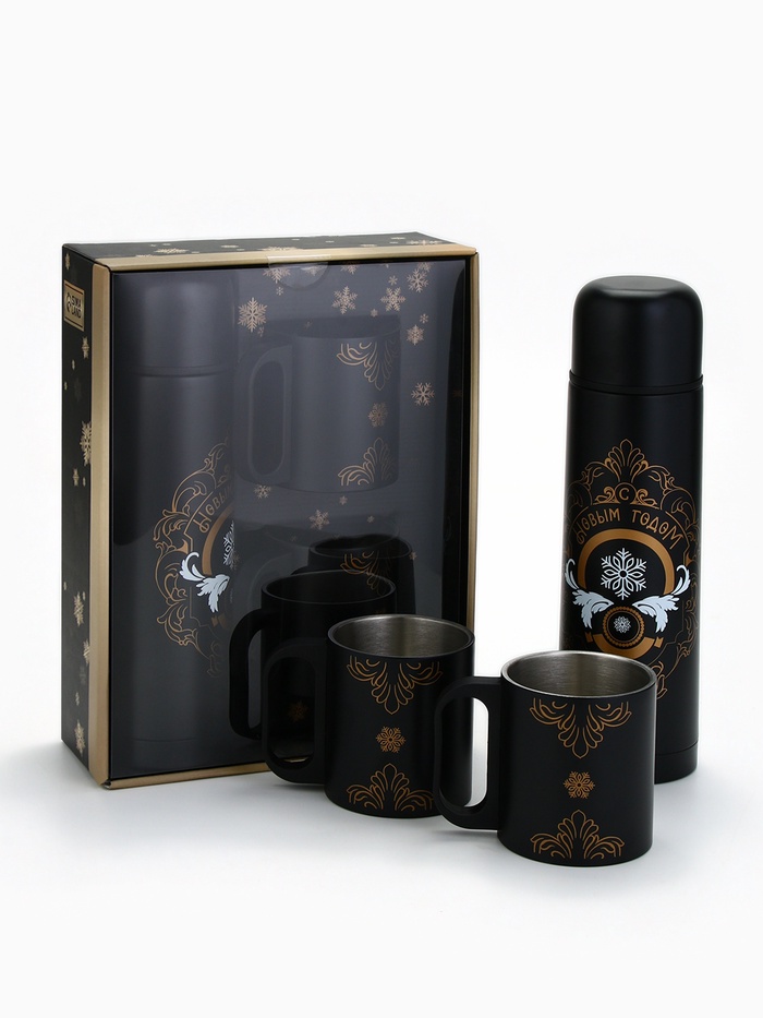 - Две кружки с новогодним дизайном станут прекрасным дополнением к термосу.