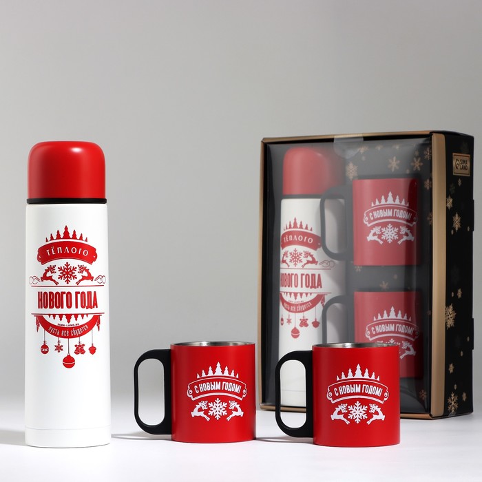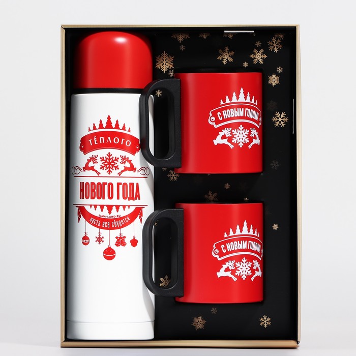 Новогодний подарочный набор «Тёплого Нового года» включает в себя термос на 500 мл и две кружки. Этот набор станет отличным подарком на Новый год для ваших близких и друзей.