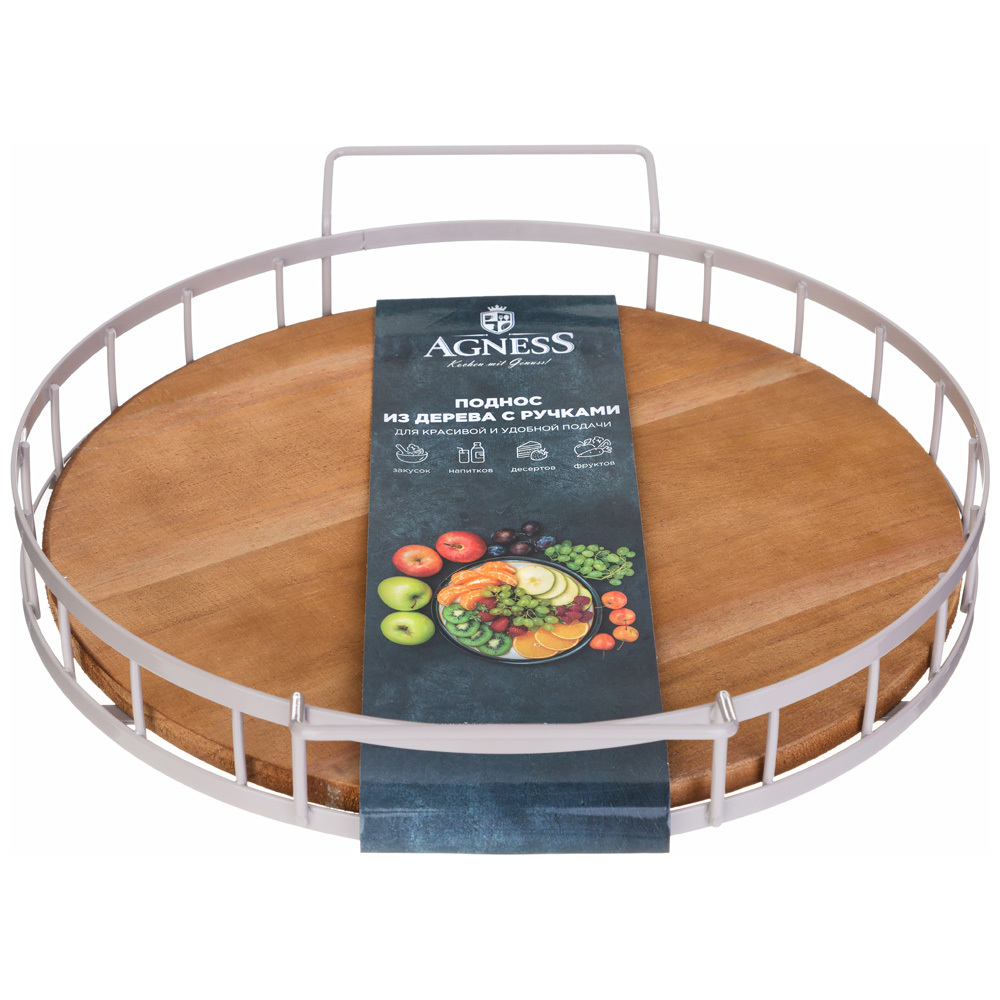 Бренд: Agness; Коллекция/Серия: Agness Agness; Категория: Подносы, Посуда; Серия: Agness; Материал: Сталь окрашенная/дерево; Фасовка: 1/8; Вес: 1.000 кг; Количество штук в коробке: 1 - 8 шт., 1 - 8 шт; Длина коробки: 40 см; Ширина коробки: 35 см; Высота коробки: 7 см; Страна производства: Китай; Товарная группа: 917 группа