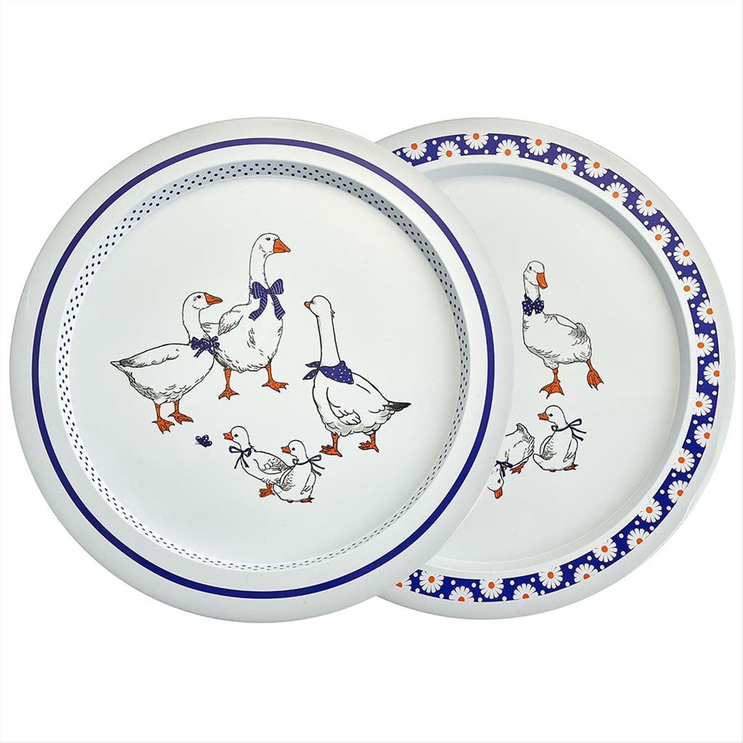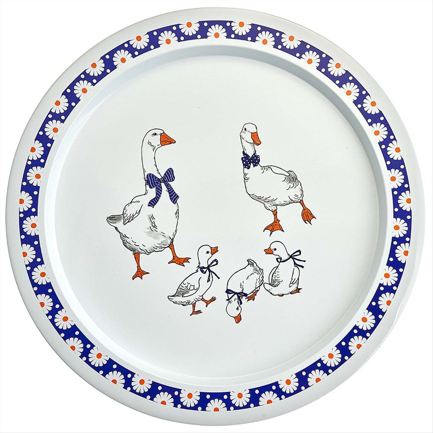 Поднос жестяной круглый 379 мм "Гуси" Ц-379х-01965 (гуси микс)