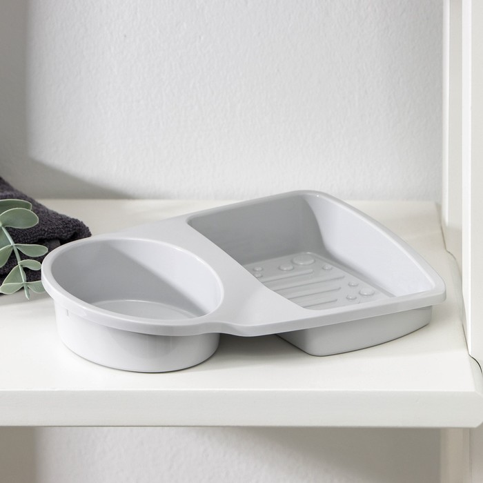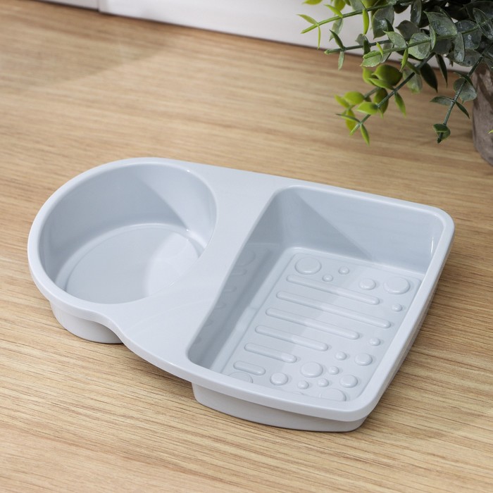 Подставка выполнена из высококачественного пластика, который обеспечивает долговечность и надёжность изделия. Благодаря своей компактности, она не занимает много места, но при этом предоставляет достаточно пространства для хранения губки. Подставка легко моется и не требует особого ухода.