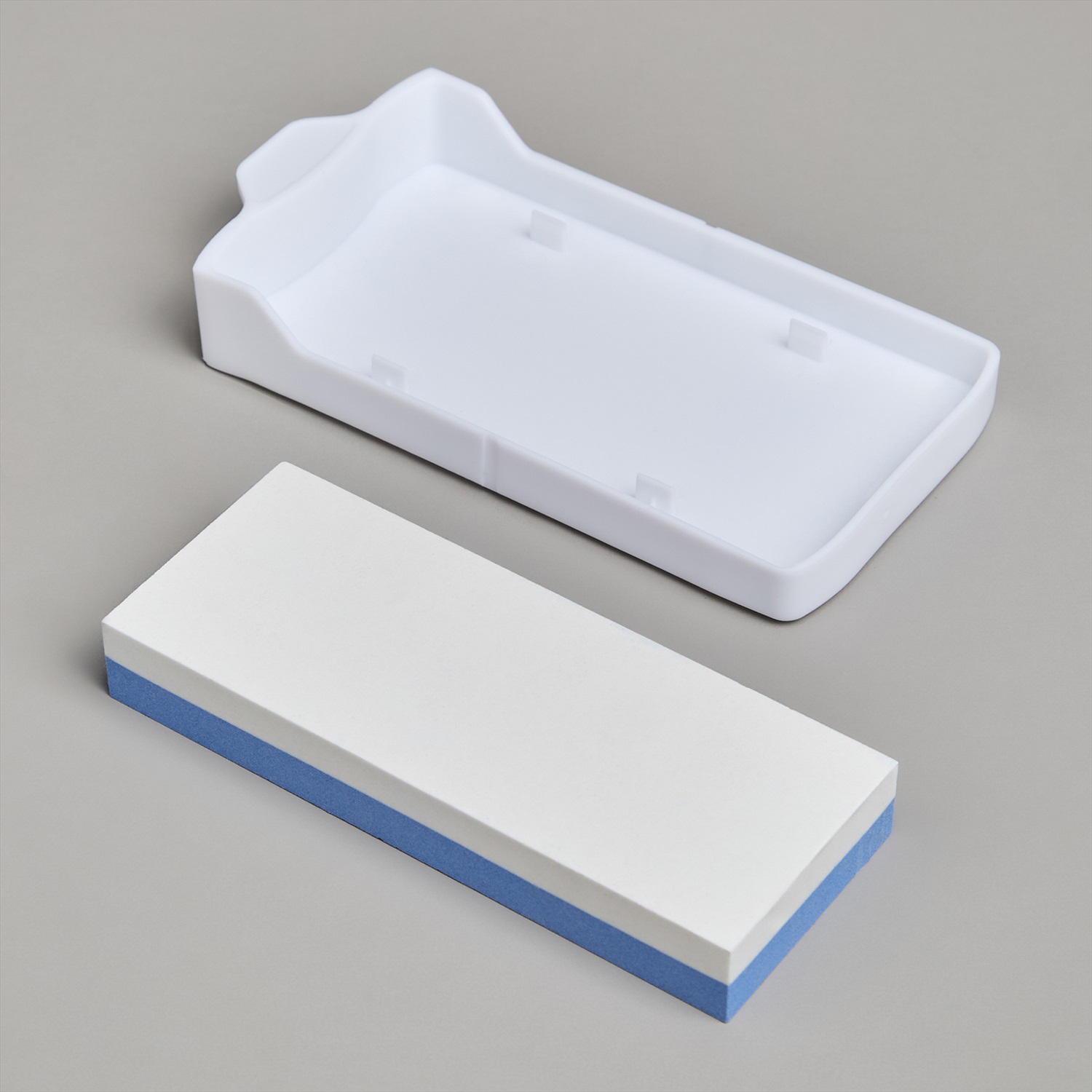* Сохраняет остроту кромки ножа. * Подходит для ножей разной длины * Компактное хранение ножей и ножеточки * Легко чистить и мыть. Верхняя часть съемная * Точильный камень в комплекте Точильный камень имеет 2 уровеня заточки. 800/2000 грит 800 грит - для выравнивания лезвия 2000 грит - для остроты лезвия Перед началом заточки точильный камень необходимо смочить водой. Начинайте заточку ножей со стороны, обладающей большей зернистостью (800 грит), затем перейдите на мелкозернистую сторону (2000 грит). Комментарии к товару