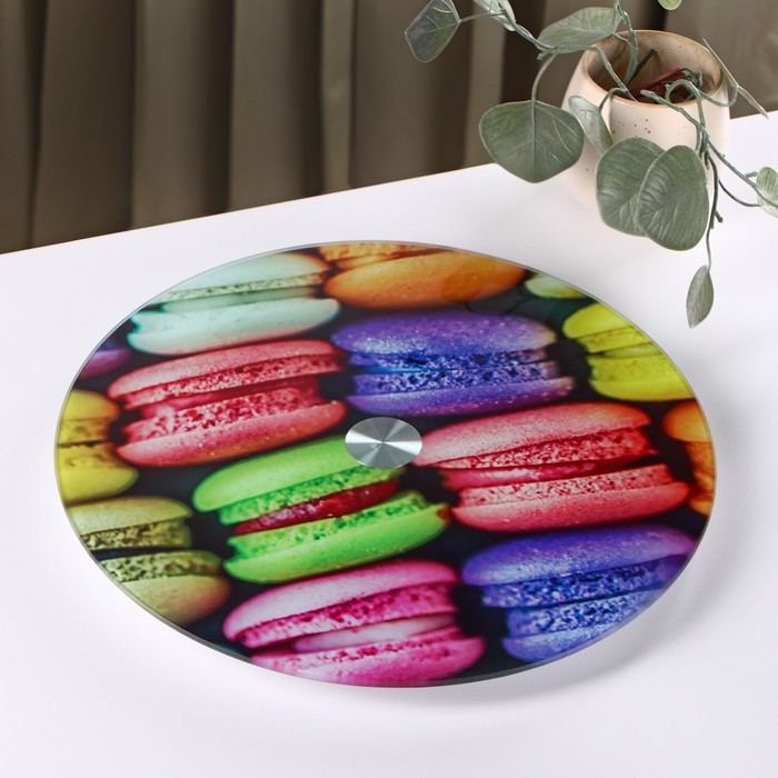 Габариты: 32,5 x 32,5 x 3 Страна: Китай В боксе: 8 шт Состав: Металл, стекло Материалы: металл, стекло Фасовка: по 1 шт Индивидуальная упаковка: Цветная картонная коробка Габариты товара: 35 см × 30 см × 2 см Сертификат: СТР Цвет: Разноцветный Форма: Круглая Диаметр, см: 32 В наборе, шт.: 1 Тематика: Сладости Рисунок: Да Материал: Стекло Текстура: Гладкая Особенности: Без особенностей Фиксированная цена: Да Подставка для торта вращающаяся предназначена для декорирования и оформления торта. За счет поворотных движений с легкостью можно выровнять борта торта, равномерно нанести узор. Поворотный механизм имеет бесшумное вращение и поворот на 360 градусов, благодаря чему процесс декорирования торта станет более приятным, быстрым и удобным. Идеально подойдет для сервировки не только торта и десертов, но и различных закусок. Максимальная нагрузка - 5 кг. ДополнительноВ связи с особенностями технологии производства, вращающийся элемент подставок расположен не идеально в центре. Это не влияет на функциональность изделия и не является браком. Комментарии к товару