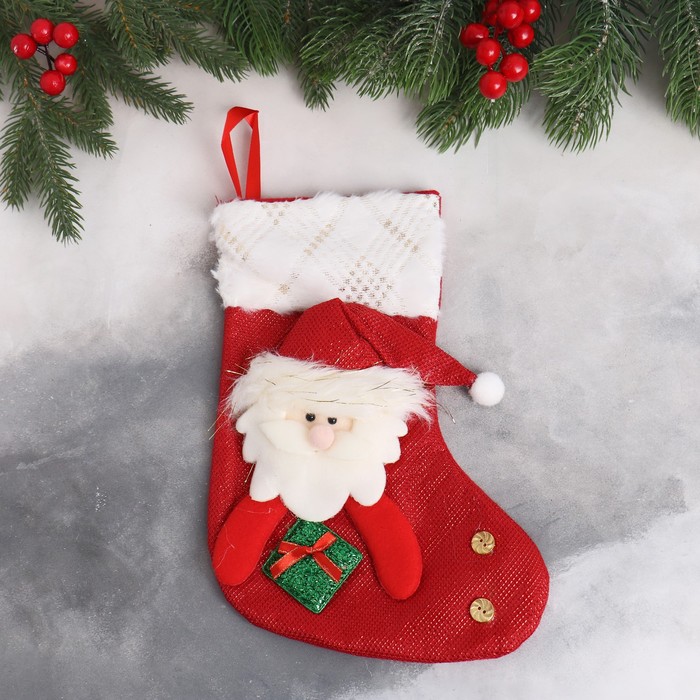 Габариты: 16 x 12 x 4 В боксе: 480 шт Габариты товара: 17 см × 26 см Размер, см: 17 х 26 Стиль: Скандинавский, Новогоднее барокко, Фьюжн Страна: Китай Состав: Текстиль Материалы: текстиль Фасовка: по 12 шт Индивидуальная упаковка: Пакет Сертификат: Не подлежит сертификации Цвет: Красный Тематика: Новогодняя Рисунок: Да Символ года: Нет Тематика праздника: Новый год Материал: Текстиль Текстильная ёлочная подвеска в форме носка с изображением Деда Мороза, держащего подарок, выполнена в стиле, сочетающем новогоднее барокко, скандинавский минимализм и фьюжн. Бело-красная гамма подчёркивает традиционное праздничное настроение и гармонично вписывается в зимний декор. Особенности
