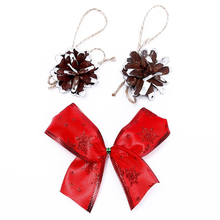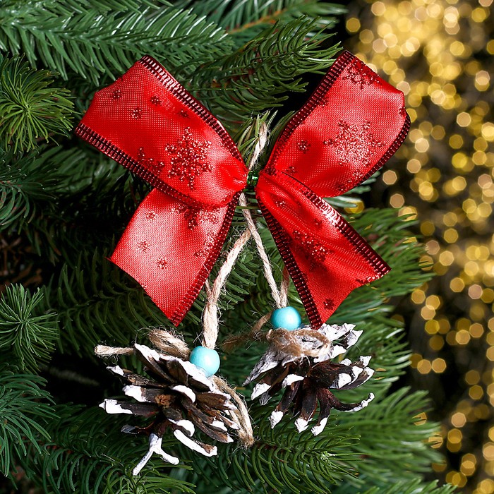 Подвеска новогодняя на ёлку «Красный бантик и шишки»