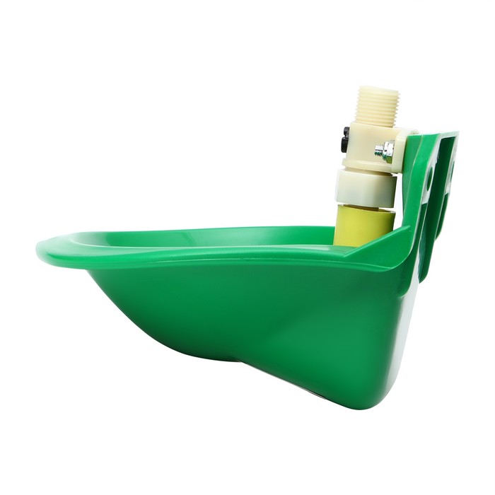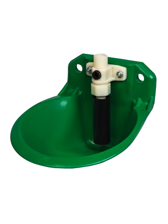 Чашечная поилка подпружинена. Когда чашка поилки заполняется водой, она под тяжестью жидкости опускается вниз, перекрывая клапан подачи воды.