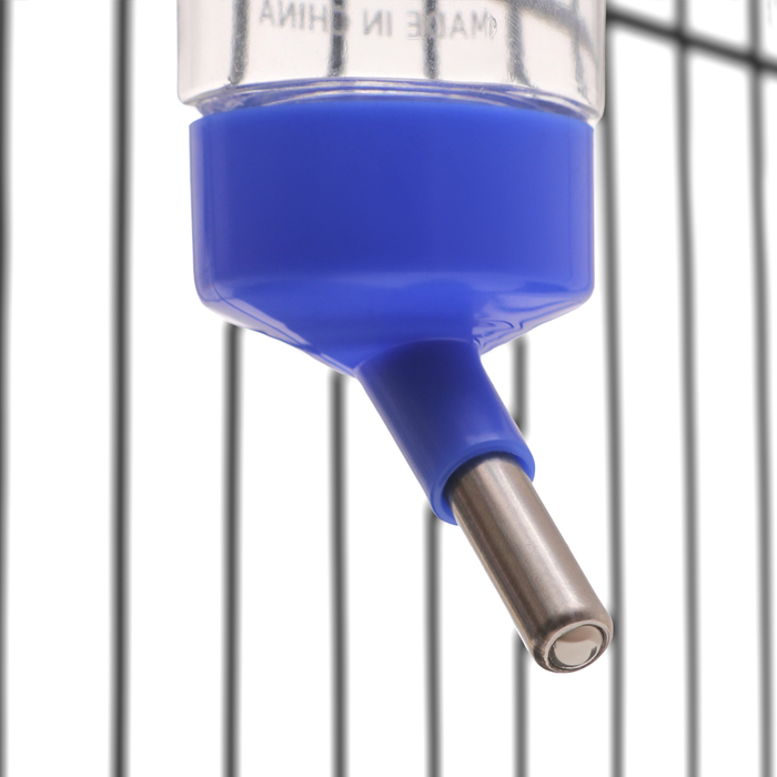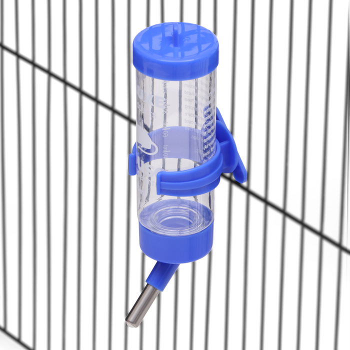* Удобство: поилка легко крепится между прутьями клетки, а прозрачные стенки позволяют контролировать уровень воды.