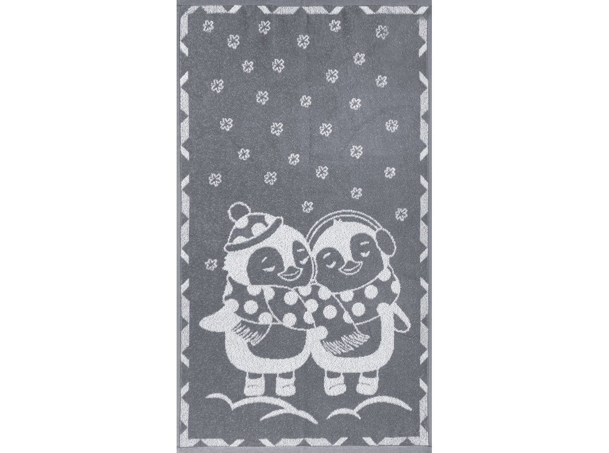 Артикул: 6с103.412ж1; Тип ткани: Махровая; Состав: 100% Хлопок; Вид оформления: Жаккардовая; Рисунок: Пингвики; Цвет: графит5; Применение: Баня, Ванная, Детские, Для лица, Новый Год; Производитель: Беларусь; Характер рисунка: Детский, Животный мир, К празднику; Оттенок цвета: Оттенки серого; Упаковка: без упаковки; Тип изделия: Полотенце; Размер полотенца, см: 50*90; Плотность, г/м²: 400; Тип полотенца: Для лица