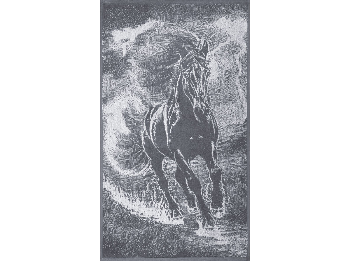Артикул: 6с103.412ж1; Тип ткани: Махровая; Состав: 100% Хлопок; Вид оформления: Жаккардовая; Рисунок: Огненная лошадь; Цвет: графит5; Применение: Баня, Ванная, Для лица, Новый Год; Производитель: Беларусь; Характер рисунка: Животный мир, К празднику; Оттенок цвета: Оттенки серого; Упаковка: без упаковки; Тип изделия: Полотенце; Размер полотенца, см: 50*90; Плотность, г/м²: 400; Тип полотенца: Для лица