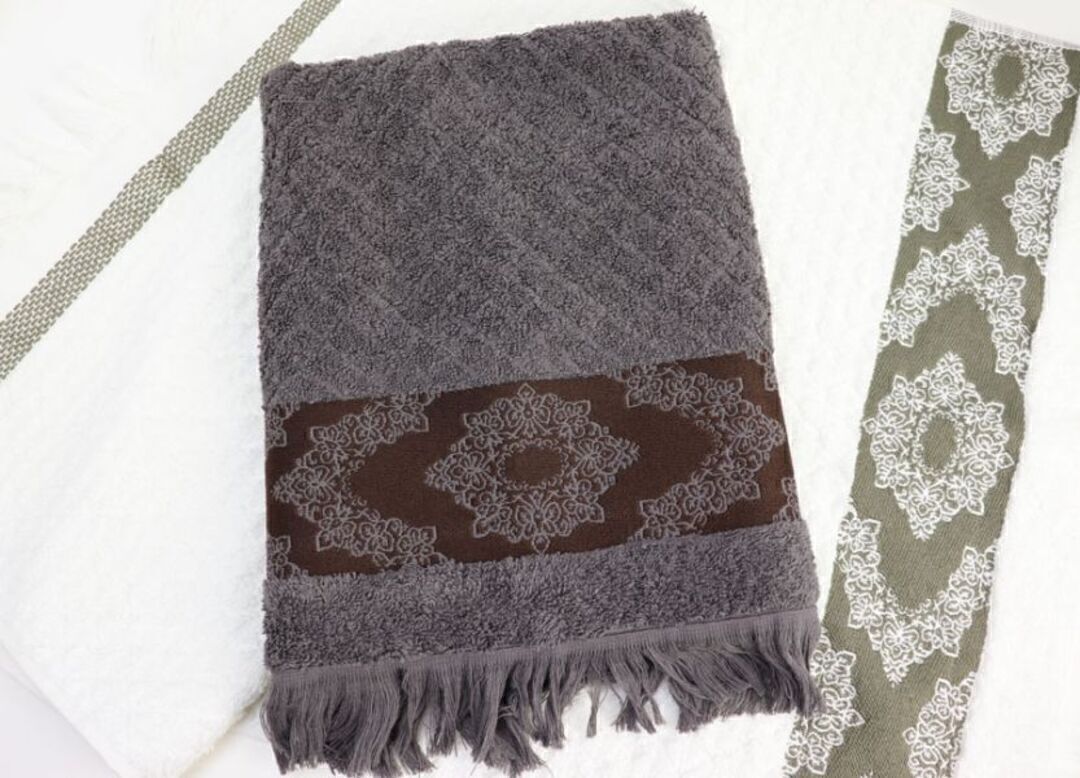Полотенце махровое Византия Узбекистан, сиреневый/серый