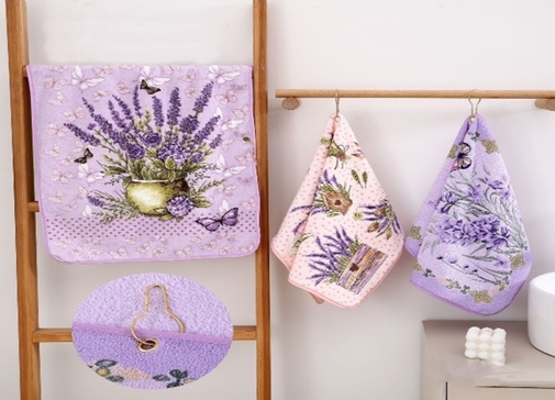 Плотность полотенец: 400 г/кв.м; Вид ткани полотенец: Махровое; Состав полотенец: 100% хлопок; Вид производства полотенец: Пестротканое; Тематика полотенец: Кухонные