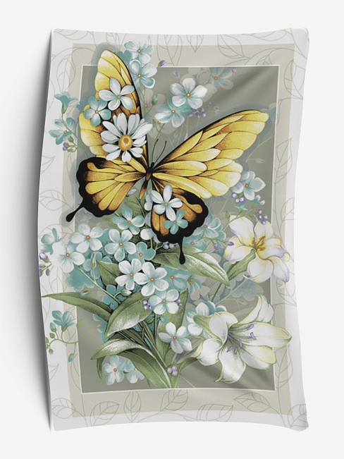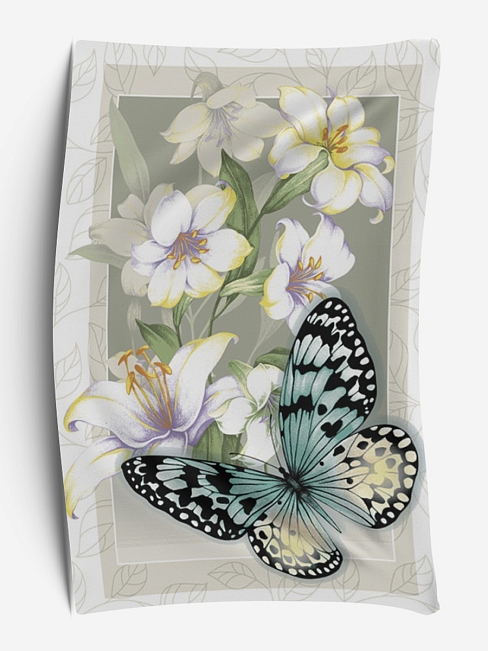 Материал: Вафельное полотно; Состав: 100% хлопок; Плотность: 165 гр/м2; Цвет: Серый; Тип рисунка: Бабочки