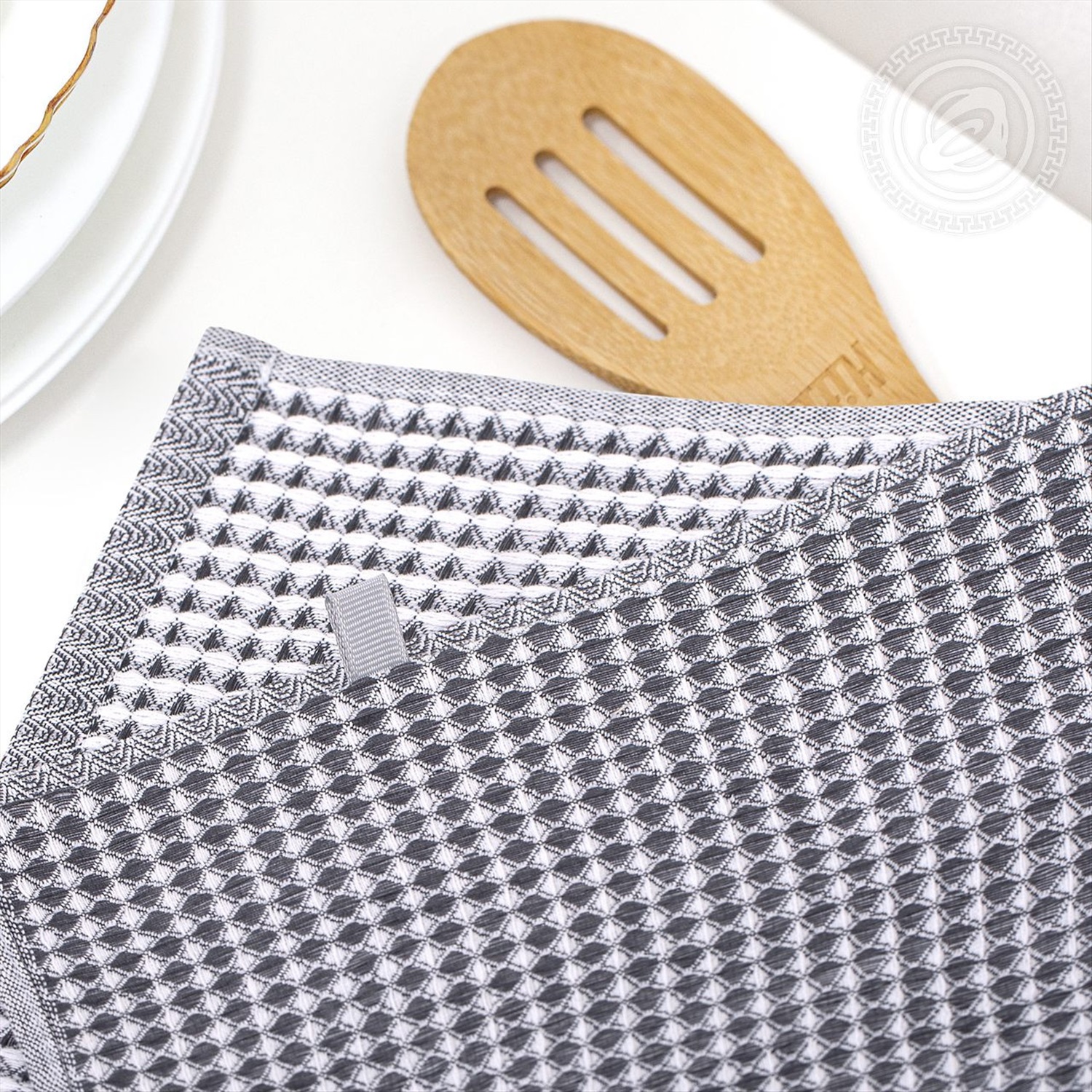 Полотенца оснащены петельками для удобного размещения на крючках. Тактильно приятная клетка на вафельных полотенцах делает их идеальными для повседневного использования.