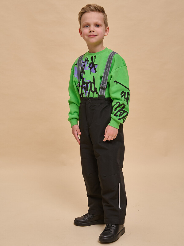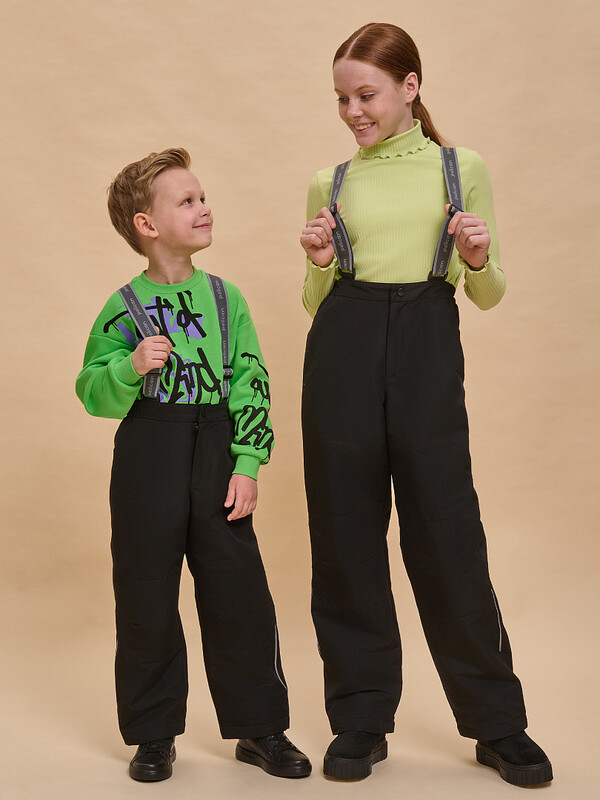 Состав: 100%полиэстер+мембрана, подклад: 100%полиэстер, утеплитель: 100%полиэстер Брюки детские демисезонные из курточной ткани с влагоотталкивающей пропиткой. Идеальная модель на сырую и грязную погоду. Подходит как мальчикам, так и девочкам. Благодаря продуманному крою хорошо садятся на детей с любой фигурой. Штаны застёгиваются на молнию и кнопку. Отстёгивающиеся эластичные лямки регулируются по длине — дети дошкольного и младшего школьного возраста могут носить брюки с ними, дети постарше могут их отстегнуть. Лямки украшает лого бренда. По низу внутренняя утяжка на эластичный шнур со стопперами — можно менять силуэт брюк: прямые или затянутые. По бокам наклонные карманы — удобно пользоваться. В боковых швах светоотражающие элементы — безопасность в тёмное время суток. На коленях усилители с вытачками для удобства. За штанами легко ухаживать — согласно рекомендациям, указанным на вшивных ярлыках. Модель выполнена из полиэстера — брюки тёплые, лёгкие, просто стираются, быстро сохнут, сохраняют отличную форму и цвет надолго. Внутри штанов гладкая подкладка для удобства надевания. Брюки детские выполнены в универсальном цвете. Их легко сочетать с различными куртками и пальто. Осенние прямые брюки подходят для девочек и мальчиков дошкольного, младшего школьного возраста, а также подростков. Рекомендуемый температурный режим: не ниже минус 5 градусов. Утеплитель: синтепон 60 г/м2. Брюки детские чёрные идеальны для носки в школу, для прогулок и активного отдыха, спорта. Помните о правильном уходе за изделием: рекомендуется стирать при температуре не выше 30 °C, без предварительного замачивания, с изнанки. Это поможет сохранить качество и цвет куртки на длительное время. Не забывайте о выборе правильного размера. Используйте таблицу размеров на фотографии, чтобы выбрать подходящий вариант для вашего ребёнка. Обратите внимание, что цвет товара на экране вашего устройства может отличаться от реального. Комментарии к товару