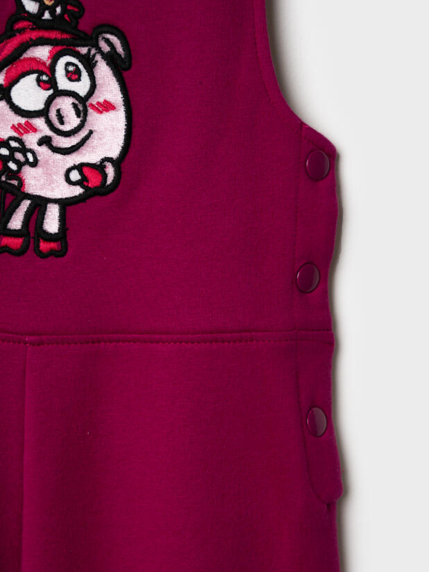 Яркий бордовый детский полукомбинезон Смешарики для девочки от PlayToday — удобная и стильная модель для активных малышей. Мягкий хлопковый трикотаж с добавлением эластана делает изделие эластичным, приятным к телу и не сковывает движений. Модель украшена милым принтом с мультяшным персонажем на груди, который обязательно понравится ребёнку. Широкие бретели и свободный крой обеспечивают комфорт в течение всего дня.