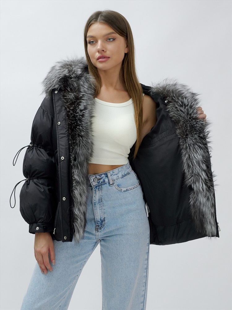 Женская зимняя куртка-полупальто с натуральным мехом чернобурки Люкс класса: идеальное сочетание стиля и комфорта.