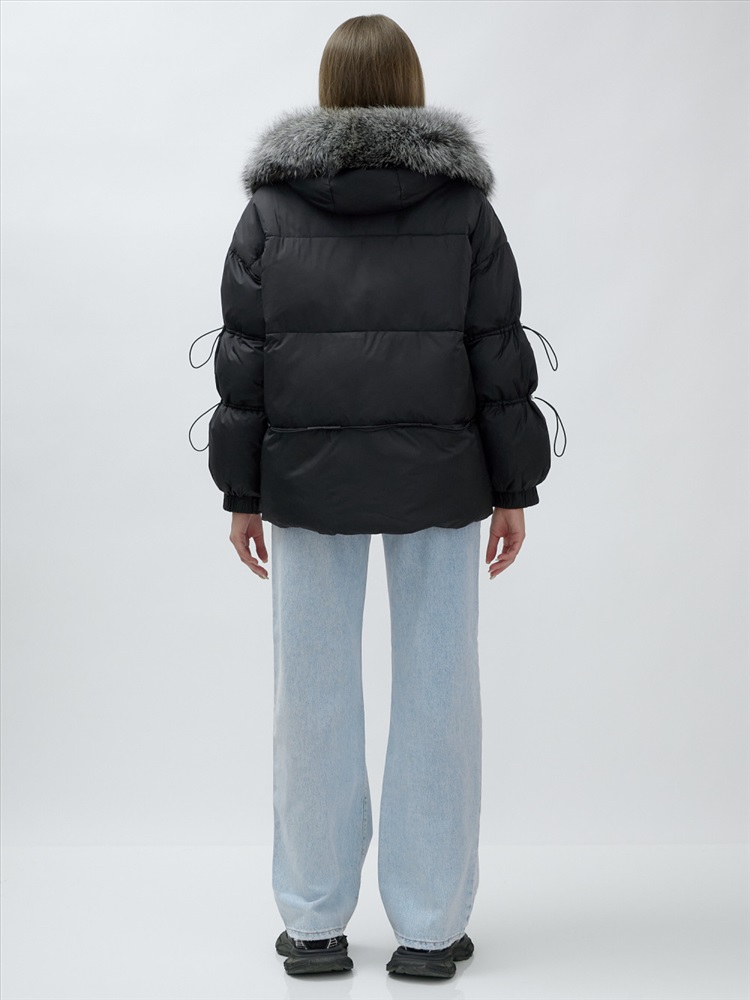 - Съемная опушка из меха чернобурки: Элегантная опушка добавляет изысканности и стиля, подчеркивая вашу индивидуальность. Этот декоративный элемент согревает не только голову, но и грудь т.к. мех располагается и под молнией.