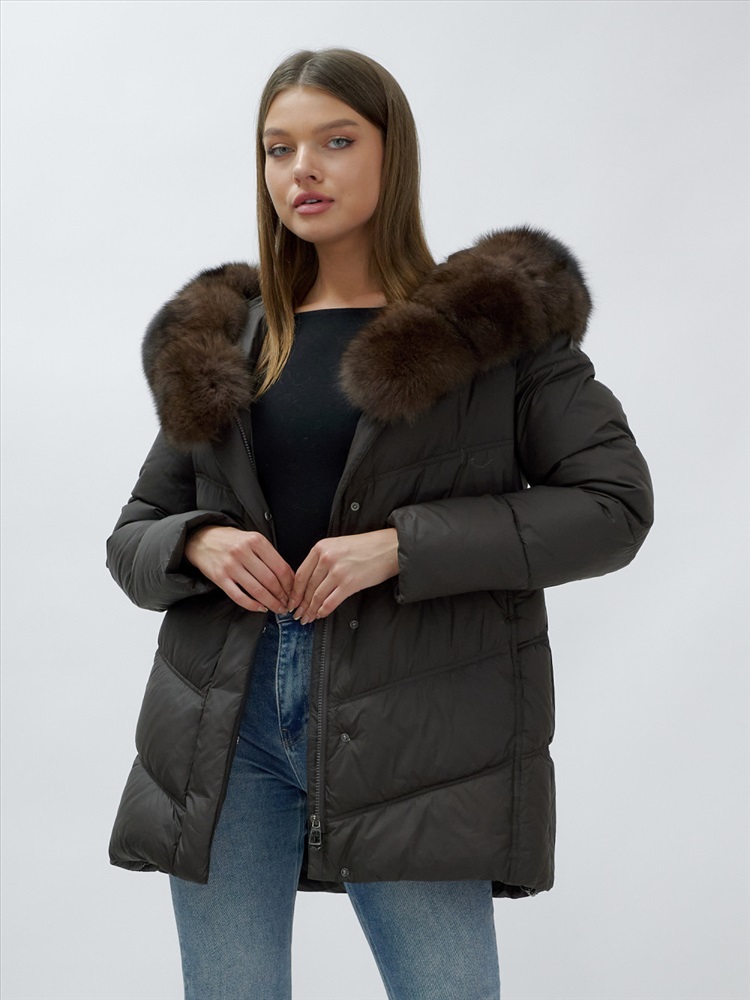 Зимняя куртка-полупальто с натуральным мехом песца класса Люкс: стиль, комфорт и защита от холода.