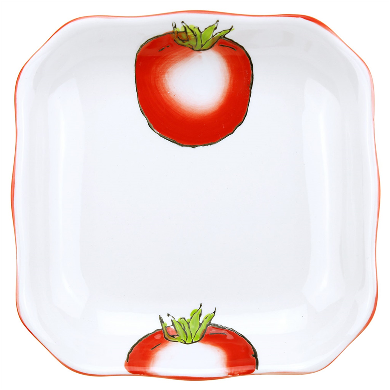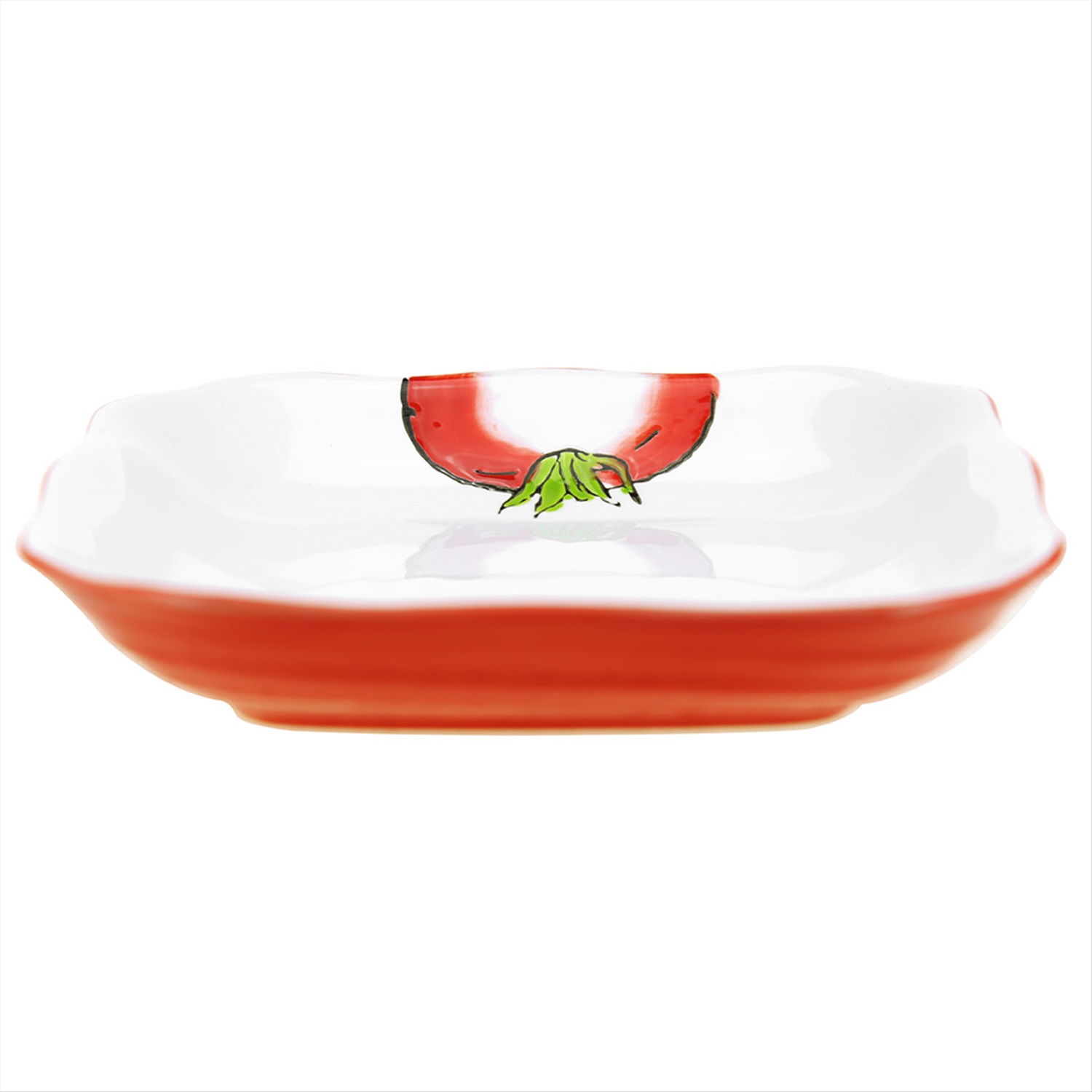 "Помидор" Тарелка глубокая фарфоровая 192х192мм h35мм, 500мл, квадратная, подглазурная деколь (Китай)