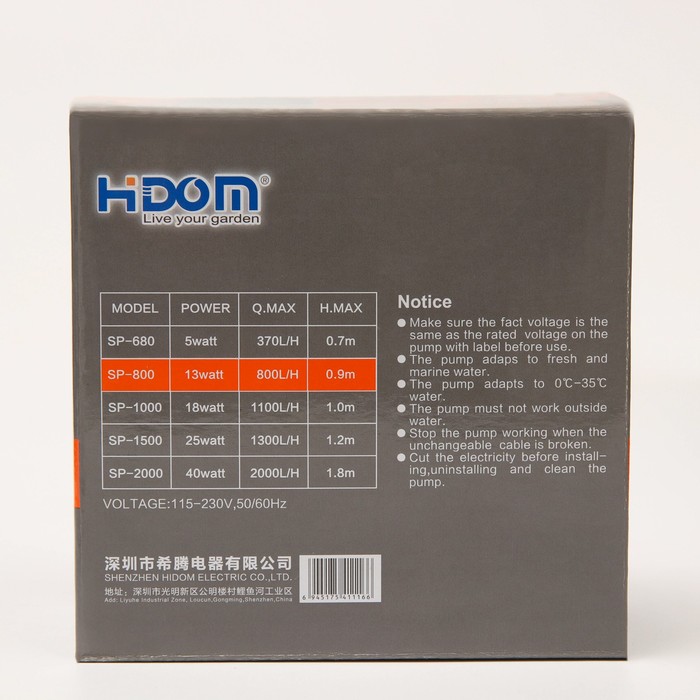 Производитель: Hidom; Габариты: 11,5 x 11,5 x 5,5; Страна: Китай; В боксе: 60 шт; Состав: Металл, пластик; Материалы: металл, пластик; Фасовка: по 1 шт; Индивидуальная упаковка: Картонная коробка; Сертификат: ЕАС; Цвет: Чёрный; Мощность, Вт: 13; Производительность, л/ч: 800; Вид: Погружная; Объём аквариума, л: 100 - 200; Фиксированная цена: Да