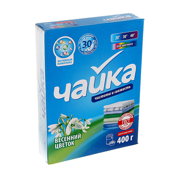Бренд: Чайка; Индивидуальная упаковка: Картонная коробка; Серия: -; Материал: -; ШтрихКод: 4814628003055; Страна происхождения: Беларусь; Тип: Стиральный порошок; Вес: 400000; Вид: Порошок; Вес (кг): 0.4; Вес (гр): 400; Отдушка: Весенний цветок