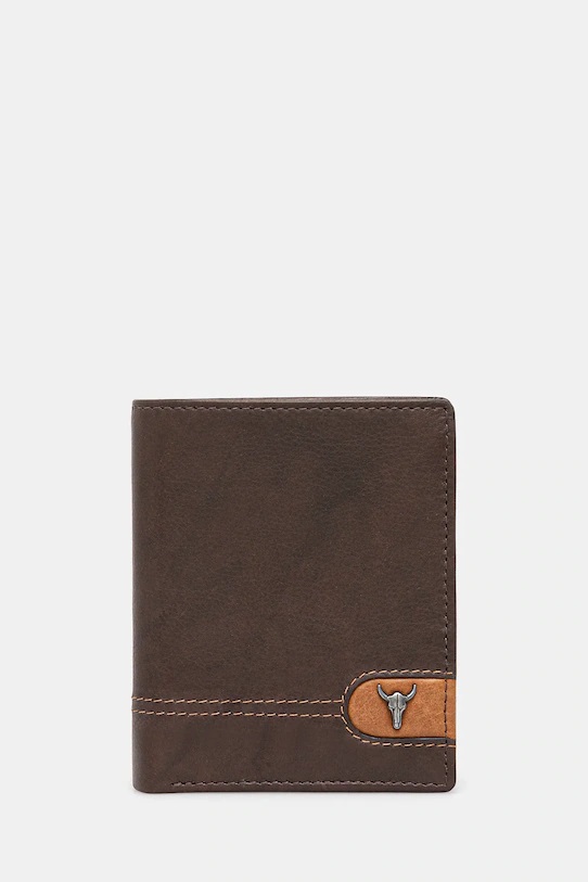 Portfel skórzany męski z ozdobnymi przeszyciami kolor brązowy