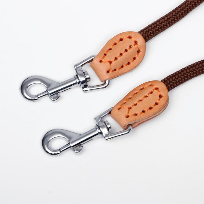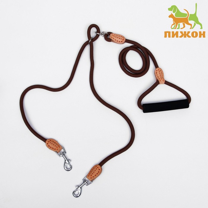 Поводок для двух собак имеет диаметр 8 мм и оснащен своркой, что позволяет удобно контролировать двух питомцев одновременно.