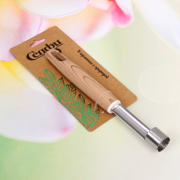 Приспособление для удаления сердцевины , позволяет за считанные секунды очистить овощи, не нарушая целостности продукта.Просто поднесите приспособление к месту расположения хвостика, круговыми движениями прокрутите, и выньте сердцевину.