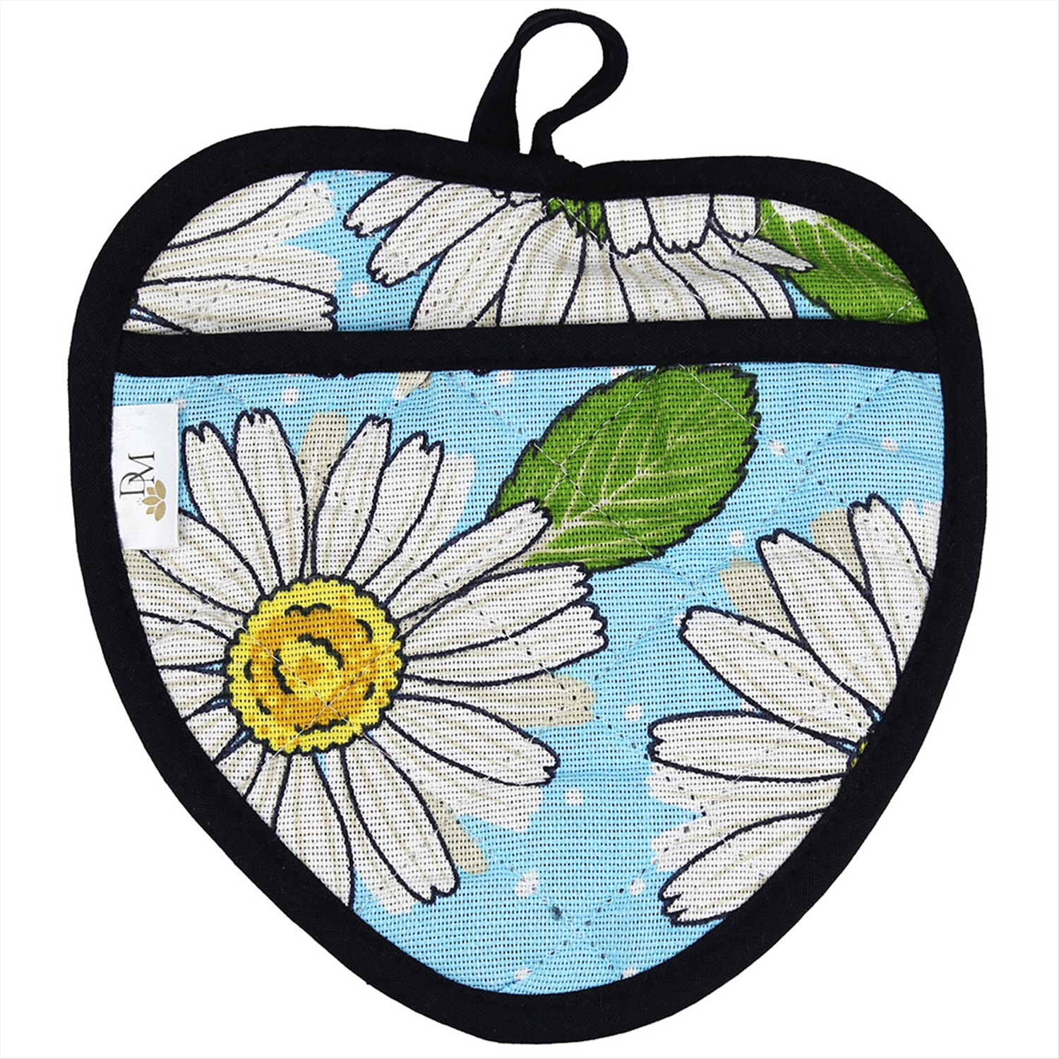 Прихватка с запахом 20х20см "Душистая ромашка, вид 4", форма "Клубника", рогожка 171г/м2, хлопок 100%, наполнитель - ватин 280г/м2, на пластмассовом подвесе, "Домашняя мода" (Россия)