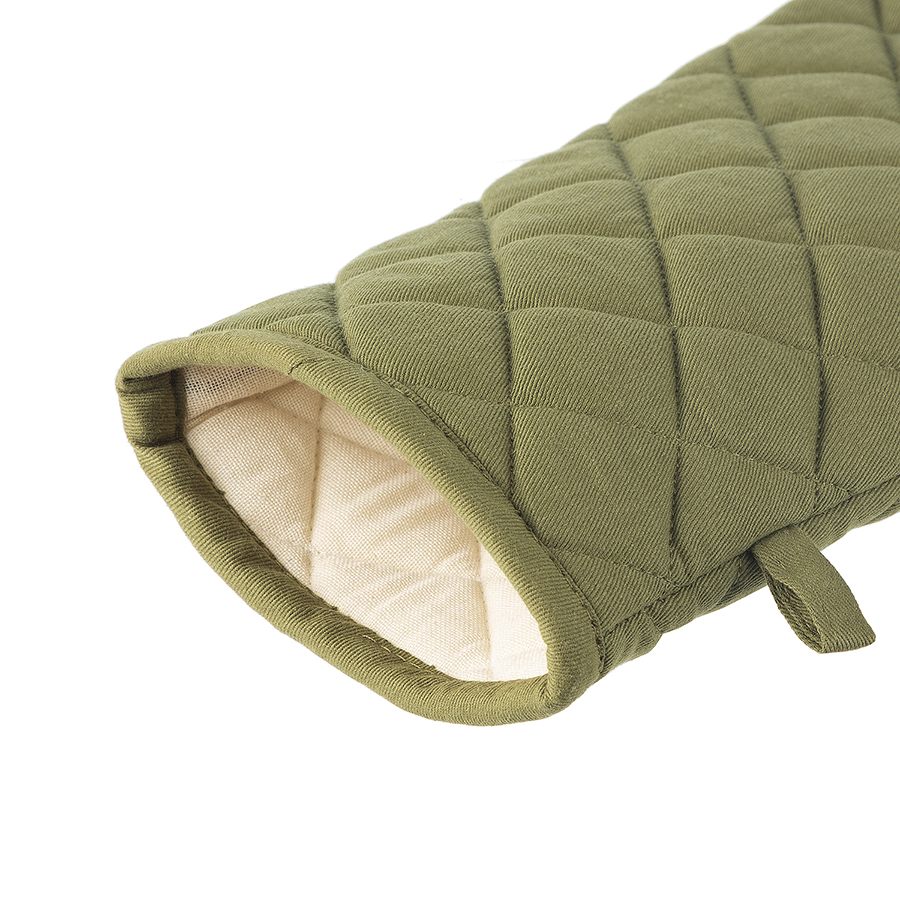 Коллекция: Essential Название товара: Прихватка-варежка из хлопка оливкового цвета из коллекции Essential, 17,5х33 см Артикул: TK22-OM0001 Материал: 100% хлопок, 100% полиэстер Цвет: зеленый Вес: 70 гр Размеры в упаковке (ШхГхВ): 17,5 х 33 х 2 см Размеры без упаковки (ШхГхВ): 17,5 х 2 х 33 см Прихватка-варежка из хлопка оливкового цвета из коллекции Essential – универсальный кухонный аксессуар. Изделие не нагревается и защищает руку при контакте с горячими поверхностями. Внешняя и внутренняя части выполнены из 100% гипоаллергенного хлопка. Наполнитель: полиэстер. Есть удобная петелька для подвешивания. Размер: 17,5х33 см. Комментарии к товару