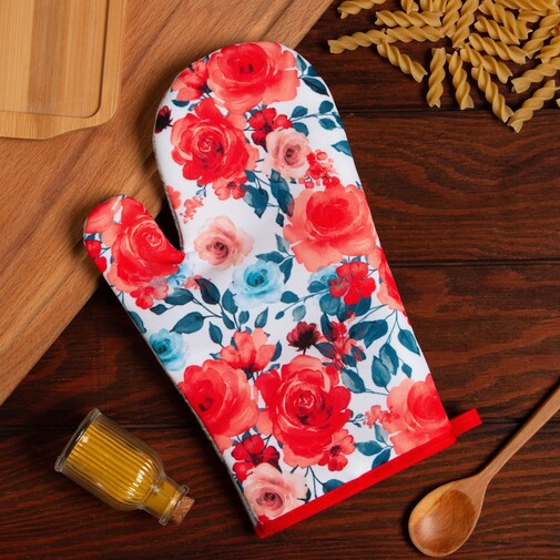 Прихватка-Варежка п/э Доляна<9241967 Розы 26*16>