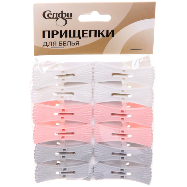 Бренд: Селфи; Индивидуальная упаковка: Пакет полимерный; Материал: Пластик; ШтрихКод: 6931994528642; Страна происхождения: Китай; Тип: Прищепки бельевые; Количество в коробке: 144; Количество предметов в наборе: 12