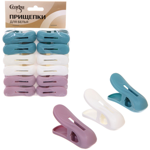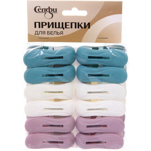 Бренд: Селфи; Индивидуальная упаковка: Пакет полимерный; Материал: Пластик; ШтрихКод: 6931994528628; Страна происхождения: Китай; Тип: Прищепки бельевые; Количество в коробке: 144; Количество предметов в наборе: 12