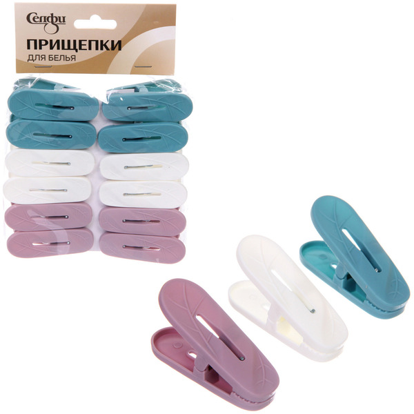 Бренд: Селфи; Индивидуальная упаковка: Пакет полимерный; Материал: Пластик; ШтрихКод: 6931994528611; Страна происхождения: Китай; Тип: Прищепки бельевые; Количество в коробке: 144; Количество предметов в наборе: 12