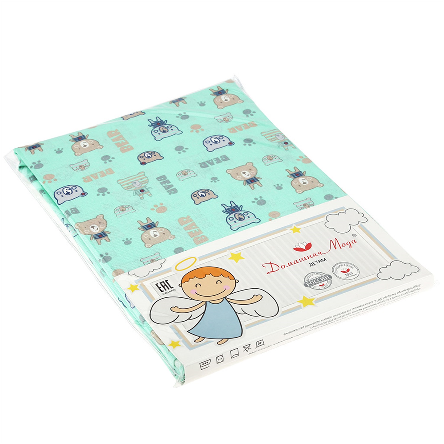 Простыня 1,5 спальная "Полосатые мишки" 3 150х215см, бязь "Комфорт" 121г/м2, хлопок 100%, упаковка "классическая" ПВХ 28х41см, "Домашняя мода" (Россия)