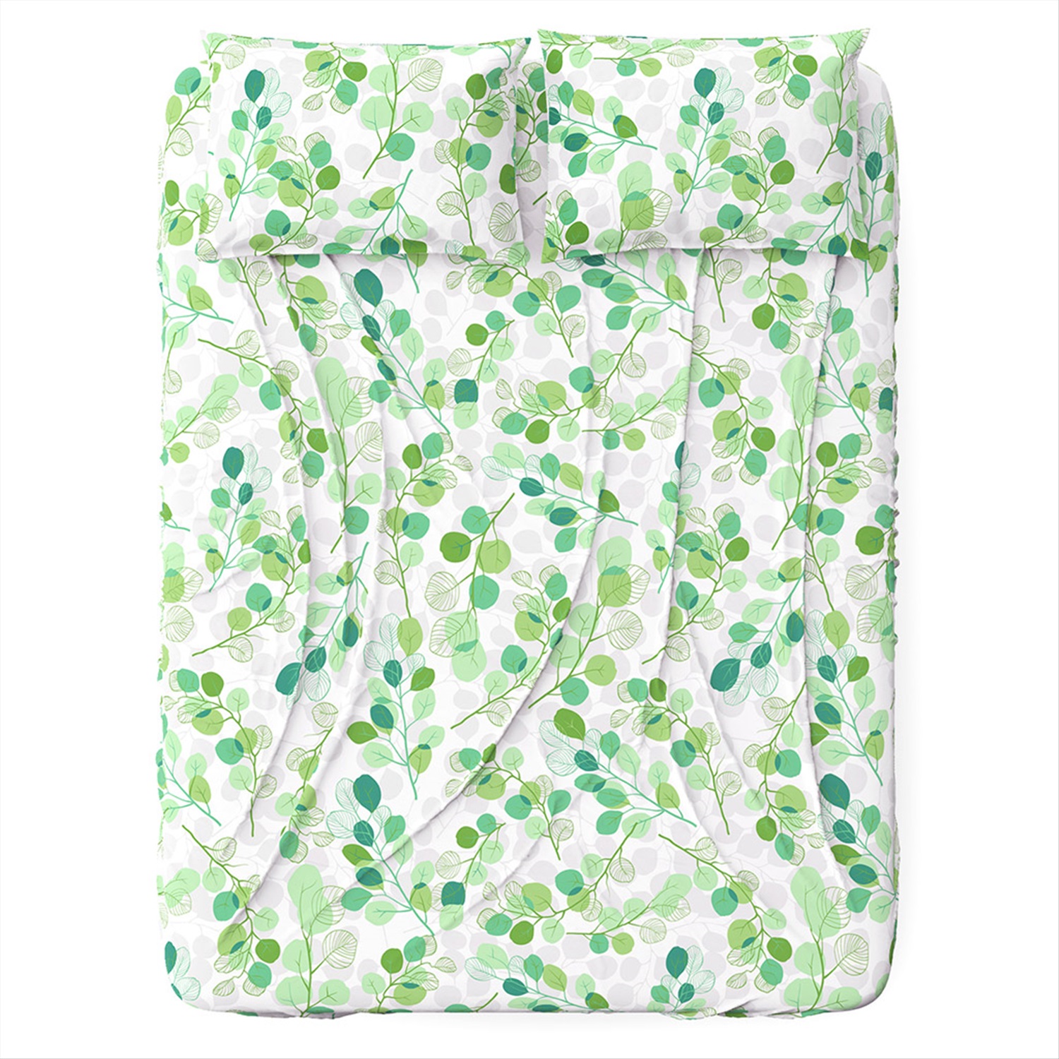 Простыня на резинке односпальная "Эвкалипт, зеленый б/з" 90х200см, свесы 27см, бязь "Комфорт" 121г/м2, хлопок 100%, упаковка "классическая" ПВХ 28х41см, "Домашняя мода" (Россия)