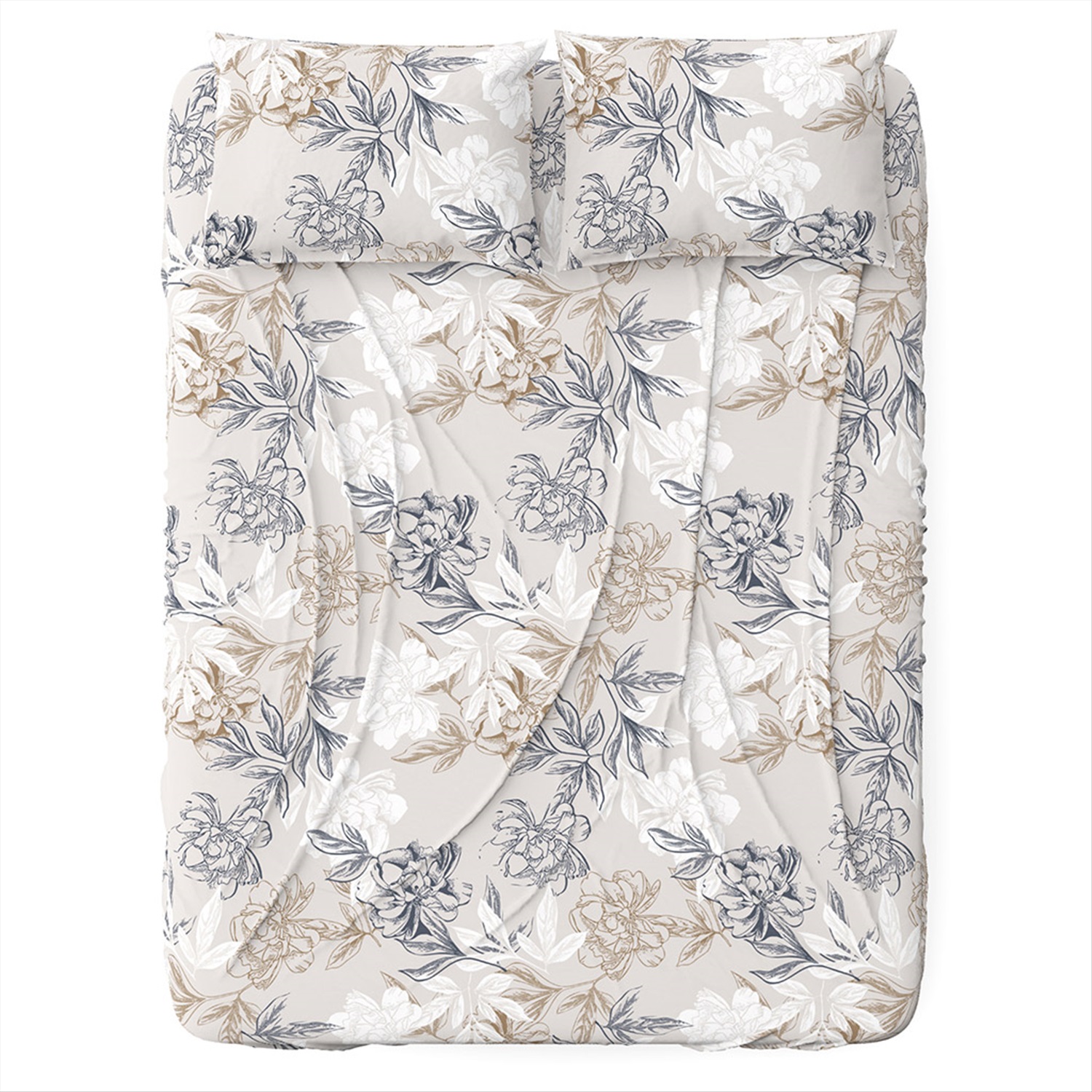 Простыня на резинке односпальная "Симфония" 8/5 серо-бежевый 90х200см, свесы 27см, бязь "Комфорт" 121г/м2, хлопок 100%, упаковка "классическая" ПВХ 28х41см, "Домашняя мода" (Россия)