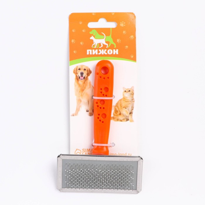 Изделие удобно лежит в руке и не причиняет дискомфорта животному при вычесывании.