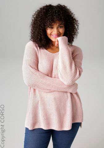 Artikelfarbe: rosa wie 141 Marke: Aniston PLUS FM Sortiment: Da. Strick/ Sweat Größen-Kategorie: Normalgrößen Inverkehrbringer: AproductZ GmbH, Werner-Otto-Straße 1-7, 22179 Hamburg, Deutschland, E-Mail- customer-service@aproductz.com Pullover mit abgerundetem V-Ausschnitt und überschnittenen Schultern, Kleine Seitenschlitze, Im dezenten Ajour-Strickmuster, Vokuhila hinten etwas länger gearbeitet, Lässiger Langarmpullover, Obermaterial: 100% Polyacryl, N-Gr