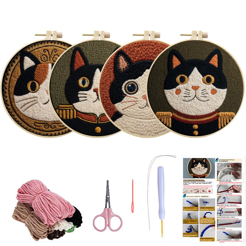 Состав набора: Ткань для вышивания 30х30см с нанесенным рисунком, пяльцы 20х20см, пряжа разных цветов , 2 специальные иглы, ножницы, инструкция