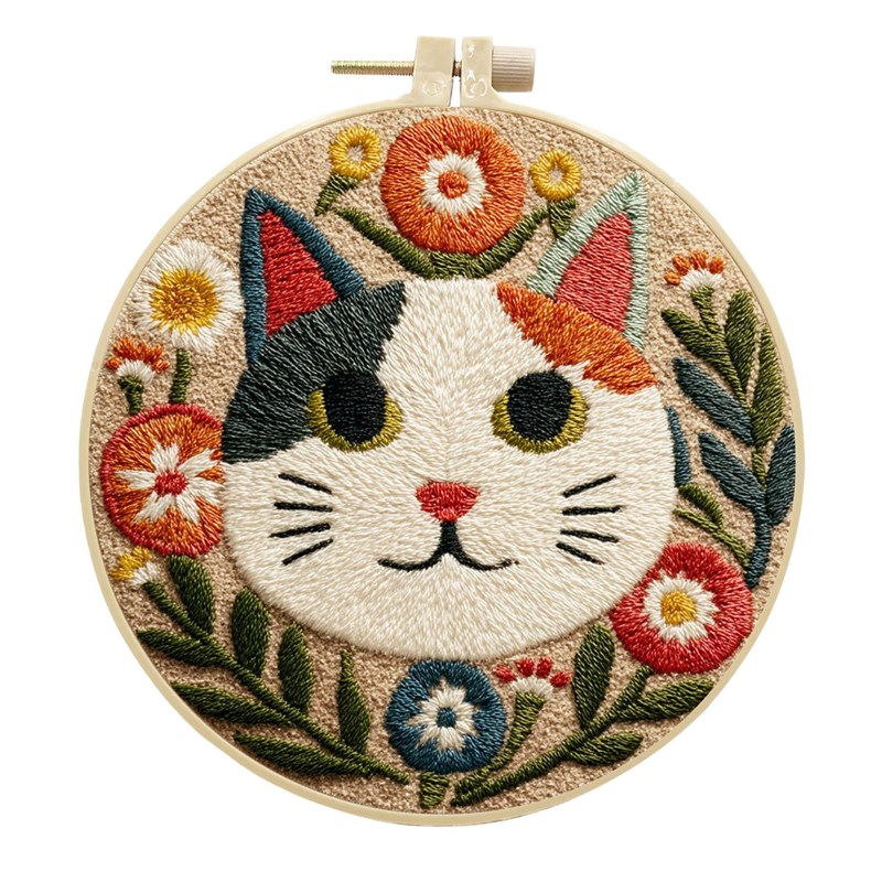 Состав набора: Ткань для вышивания 30х30см с нанесенным рисунком, пяльцы 20х20см, пряжа разных цветов , 2 специальные иглы, ножницы, инструкция
