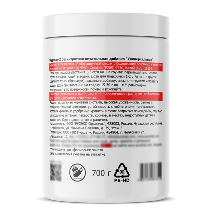 Безнитратная питательная добавка для выращивания растенийсоставПитательная добавка Пуршат-Z органическое удобрение из вулканического цеолита, созданное на основе активного кремния, экологически безопасен, дополнительных подкормок растению не потребуется. Питательная добавка используется для обеспечения растения сбалансированным набором элементов питания на любом этапе его жизненного цикла. Идеально подходит для улучшения питательных свойств почвы и ускорения роста и развития для выращивания рассады, посадки и подкормки всех видов растений: овощей, зелени, кустарников, деревьев, газона, цветов. Не содержит нитратов, гормонов, пестицидов, гербицидов и ускорителей роста. Ограничений по количеству вносимой добавки нет. Удобрение продуктивно до 2 лет.