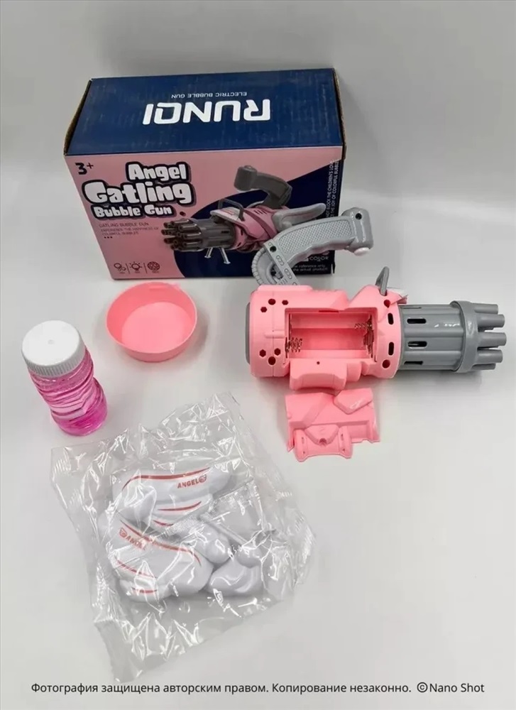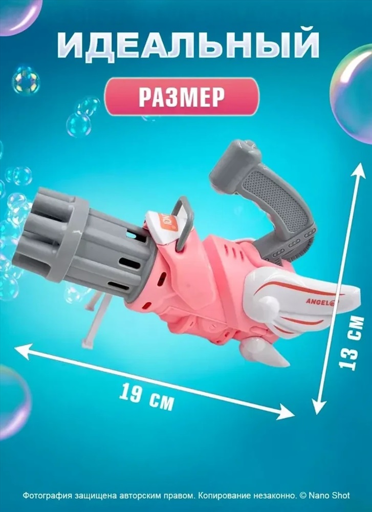 Представляем Вашему вниманию невероятно легкую воздушную игрушку пушку-генератор мыльных пузырей . Генератор мыльных пузырей - пулемет для запуска мыльных пузырей очень удобно лежит в руке, кажется невесомой и воздушной, образуя по-настоящему большое облако мыльных пузырей. Сотни мыльных шариков пускаются в воздух при одном лишь нажатии на кнопку, от такого занятия будет сложно оторваться не только ребенку, но и взрослому. Мыльные пузыри - одна из любимых забав детей. Что может быть веселее, чем устроить мыльное шоу с пузырями или мыльные перестрелки, обстреливая своих соперников каскадом маленьких пузырьков! Так же Генератор может порадовать и взрослых.
