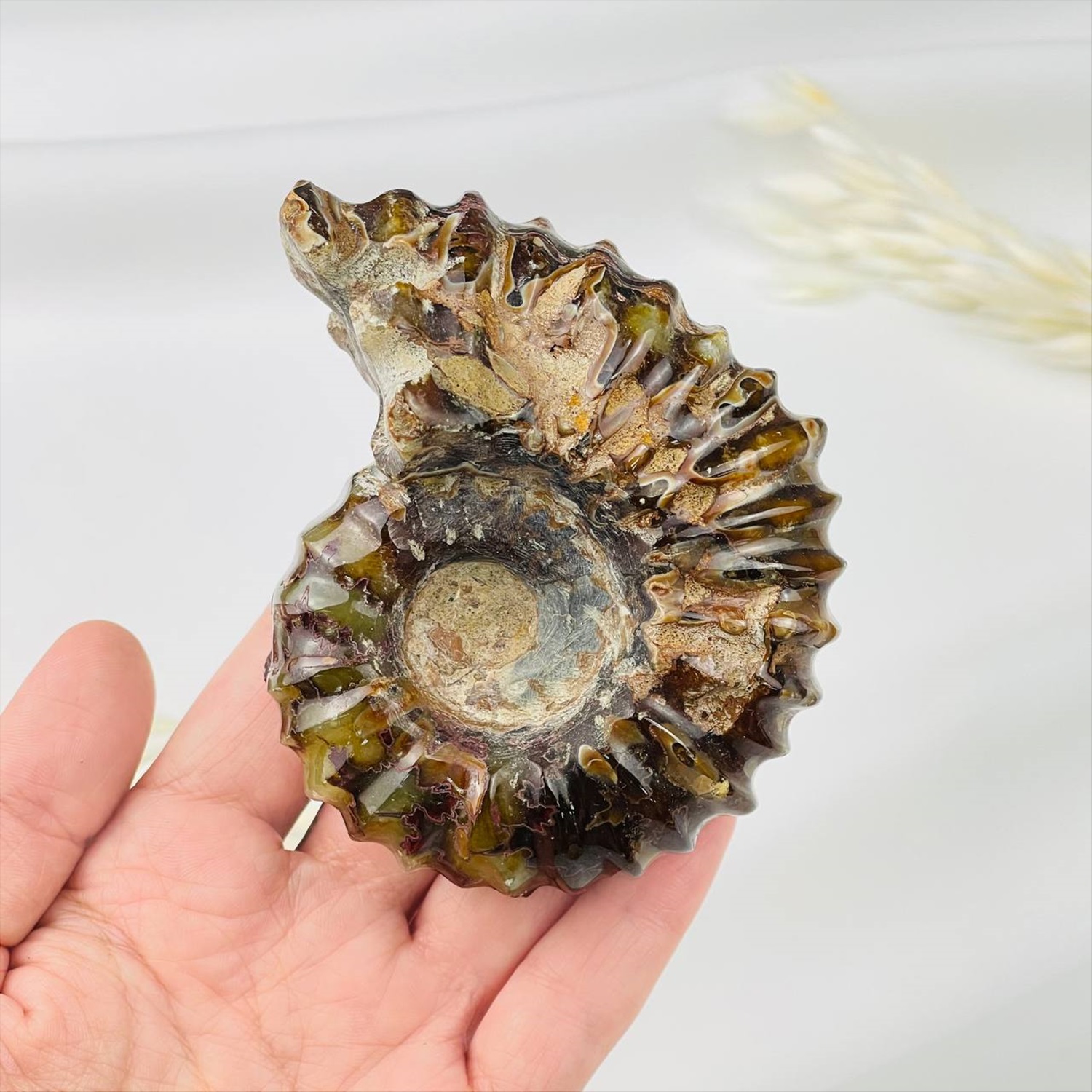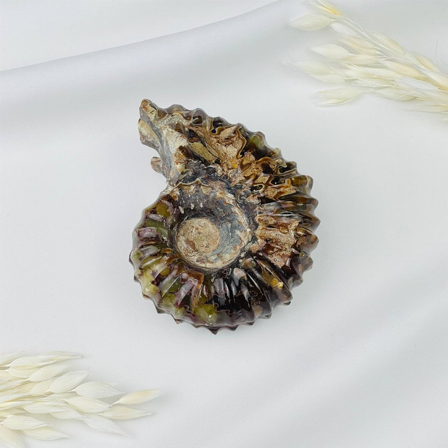 Производитель: Радуга Самоцветов; Цвет камня: Коричневый; Месторождение: Мадагаскар; Камень: Аммонит; Поверхность: Граненный/Необработанный; Размер: 7х9 см