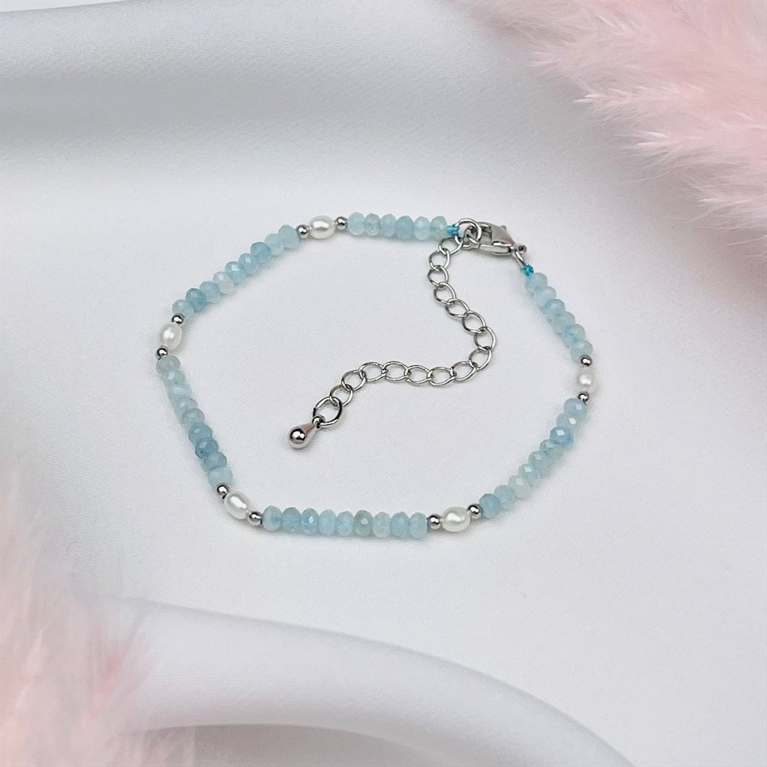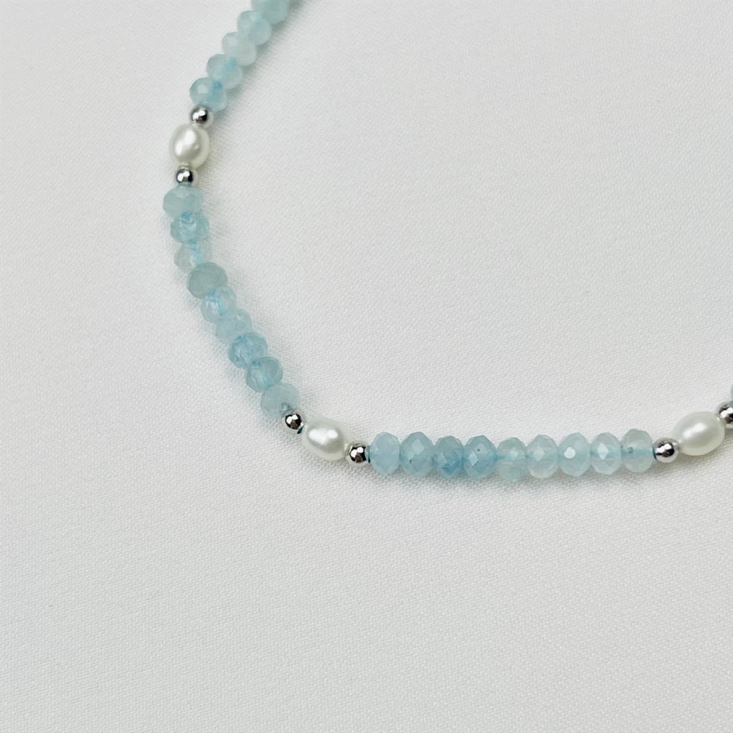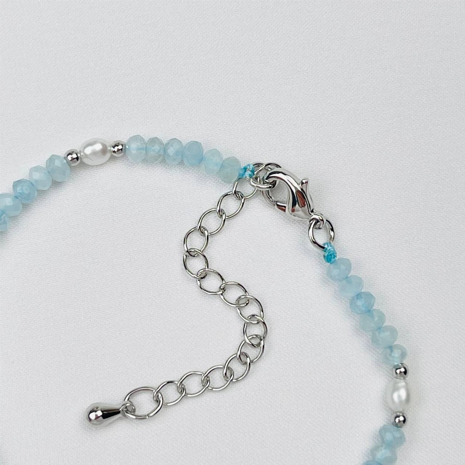 Производитель: Радуга Самоцветов; Цвет камня: Миксовый; Месторождение: Бразилия; Камень: Аквамарин; Вставка: Жемчуг; Покрытие: Бижутерный сплав; Диаметр: 3 мм; Размер: 2х3 мм; Производитель: Радуга Самоцветов (Россия); Тип замка: Карабин с цепочкой