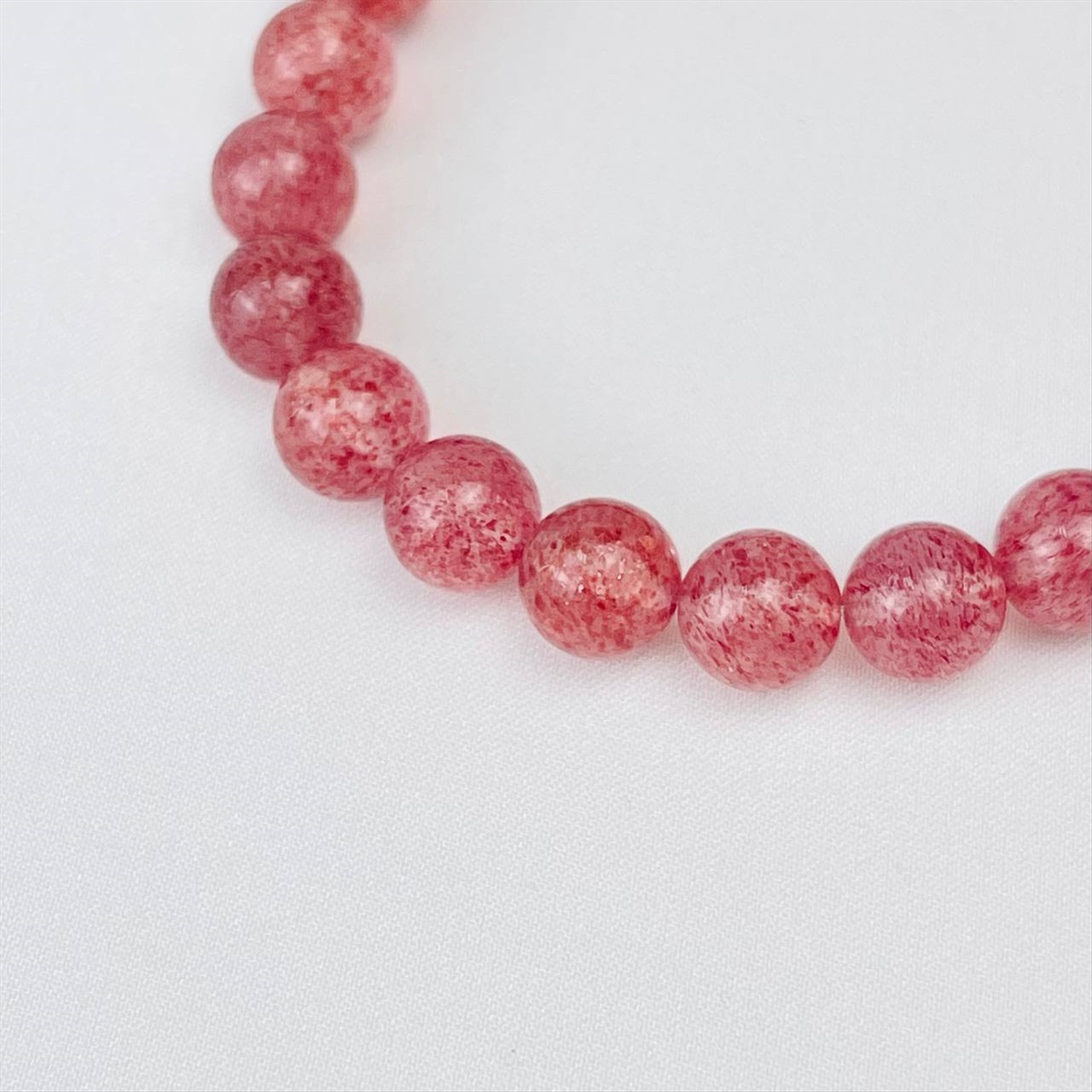 Цвет камня: Розовый Месторождение: Бразилия Камень: Клубничный кварц Диаметр: 8-8,5 мм Поверхность: Гладкий Производитель: Радуга Самоцветов (Россия) Тип замка: Резинка Комментарии к товару