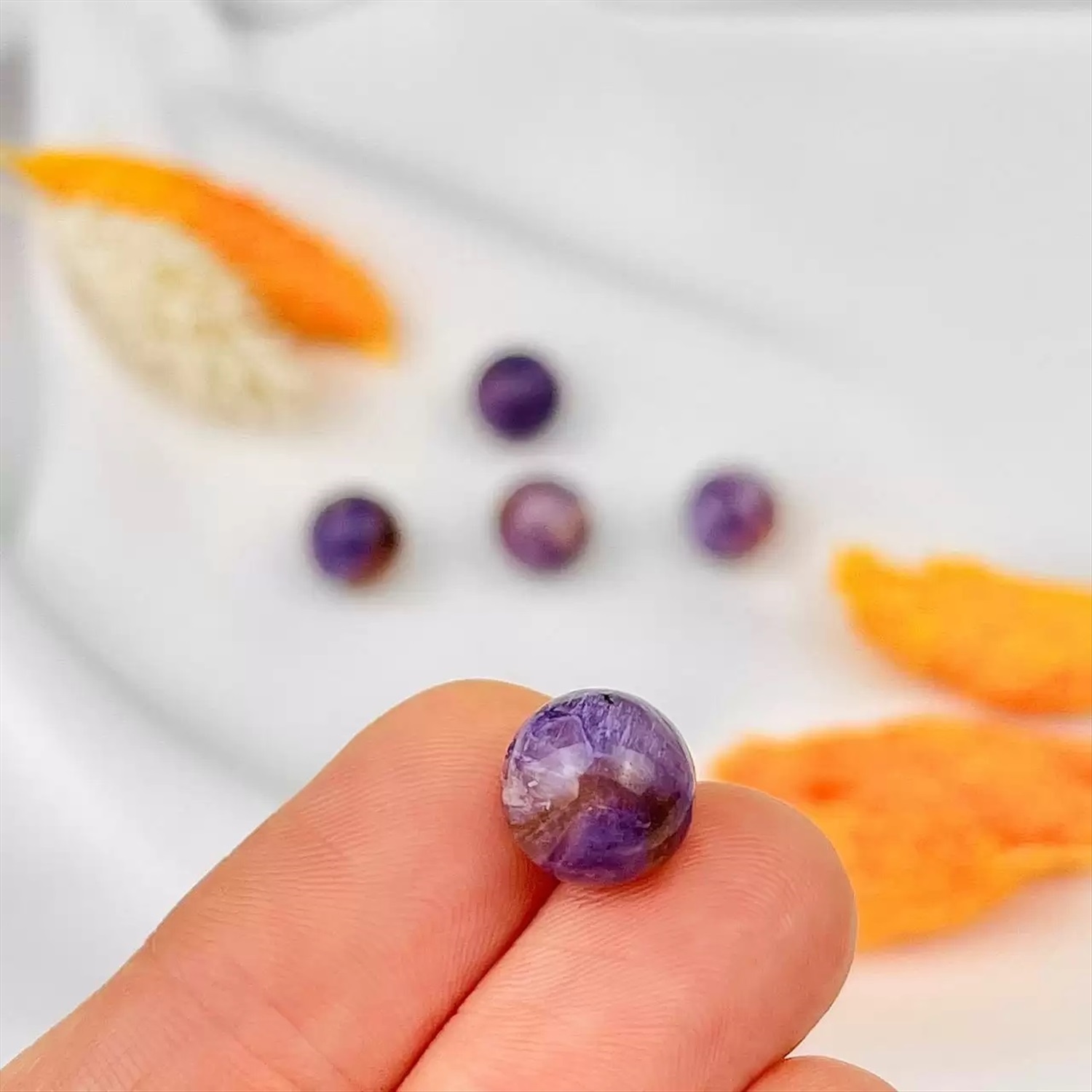 Цвет камня: Сиреневый Месторождение: Россия Камень: Чароит Диаметр: 10 мм Поверхность: Гладкий Комментарии к товару